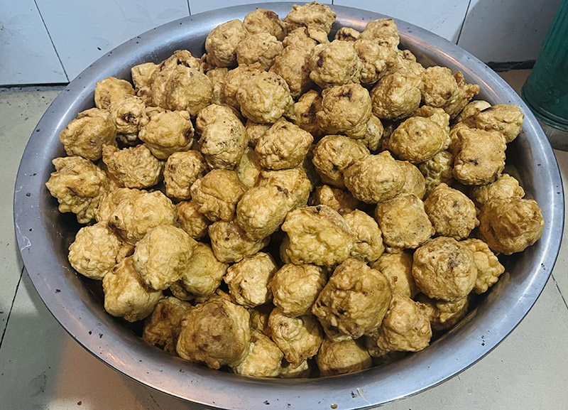準(zhǔn)備吃的東西,要提前蒸饅頭,蒸豆包,包凍餃子,炸丸子,炸肉,炸豆腐。一到炸吃的那天就會(huì)把門打開(kāi),因?yàn)闆](méi)有油煙機(jī),冬天窗戶又封住子,只能開(kāi)門放油煙,一進(jìn)門煙霧彌漫,像進(jìn)了澡堂子。