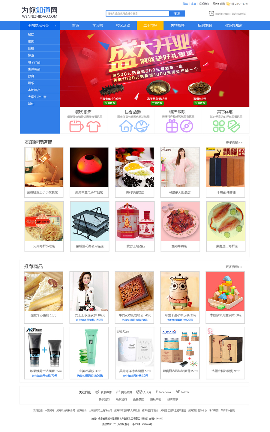 這個網(wǎng)站是兩個大學(xué)生在學(xué)校創(chuàng)業(yè),做了一個網(wǎng)站,可以發(fā)布商家的信息,讓學(xué)生去消費(fèi)的網(wǎng)站。網(wǎng)站是2014年做的,那個時候微信還沒有那么火,也沒有短視頻APP,大家還是習(xí)慣在電腦上查詢信息。